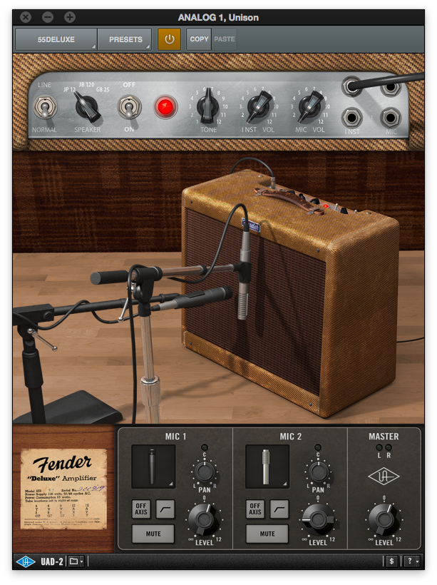 The guitar was plugged in directly in the Apollo Twin Universal Audio interface with the Fender 55 Tweed Deluxe plugin loaded. Only a touch of reverb was added in Final Cut Pro during the video editing.