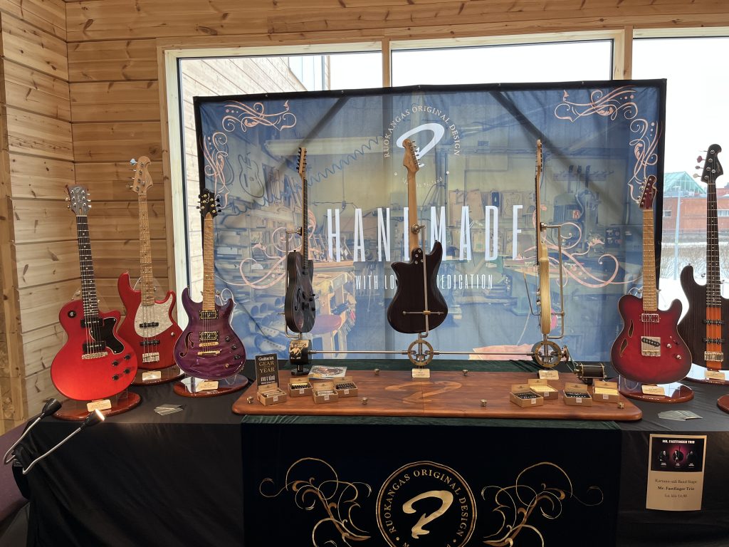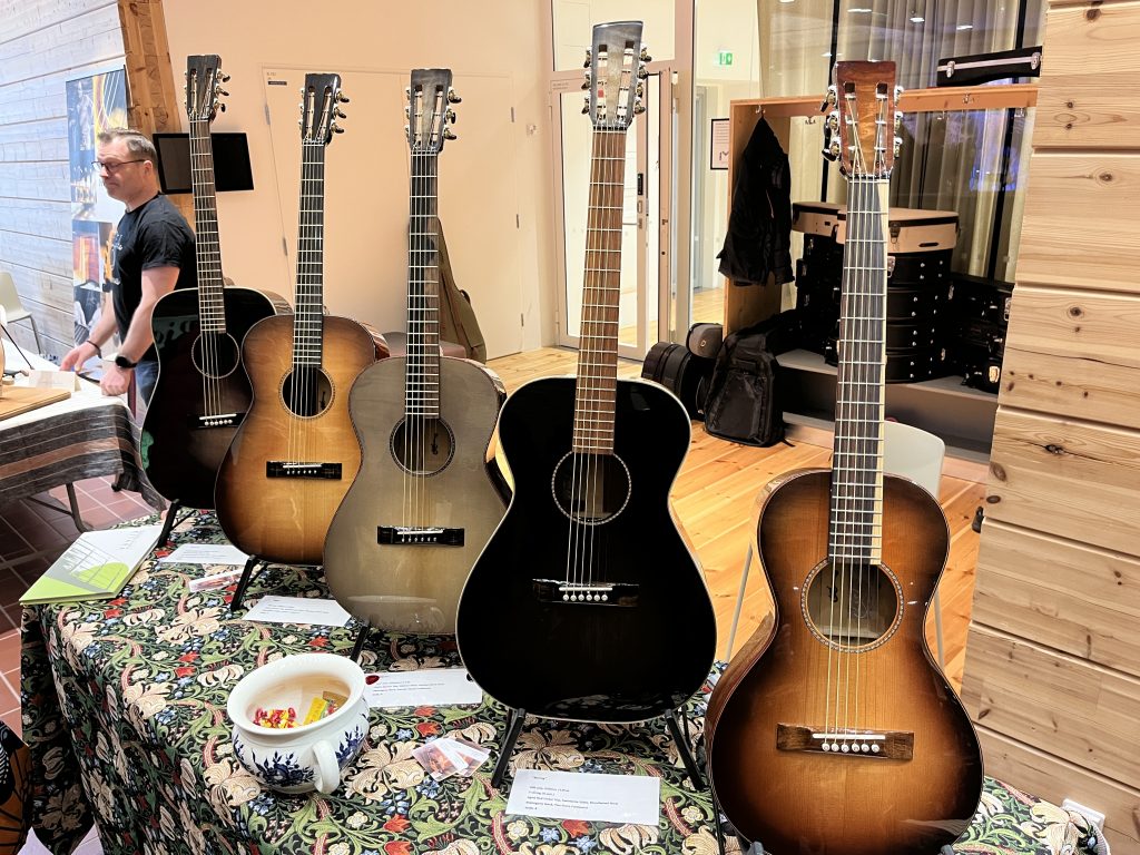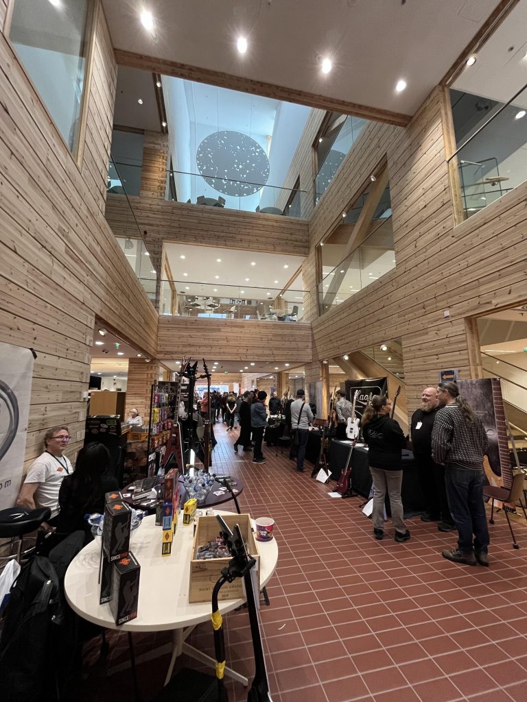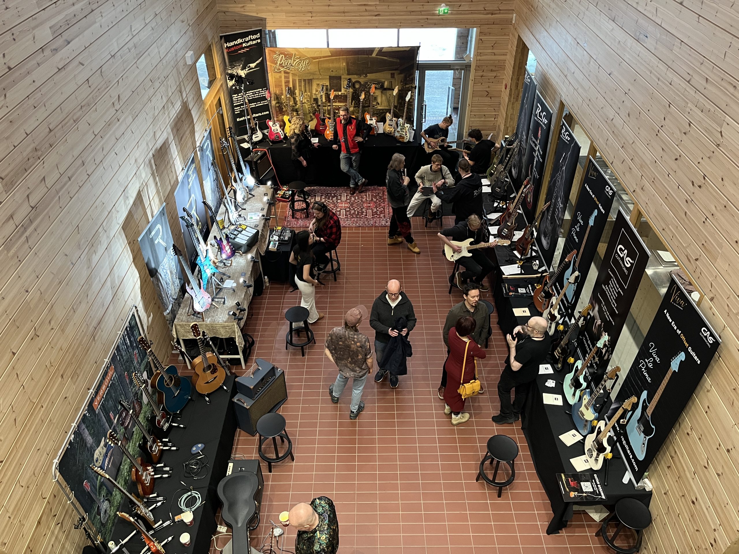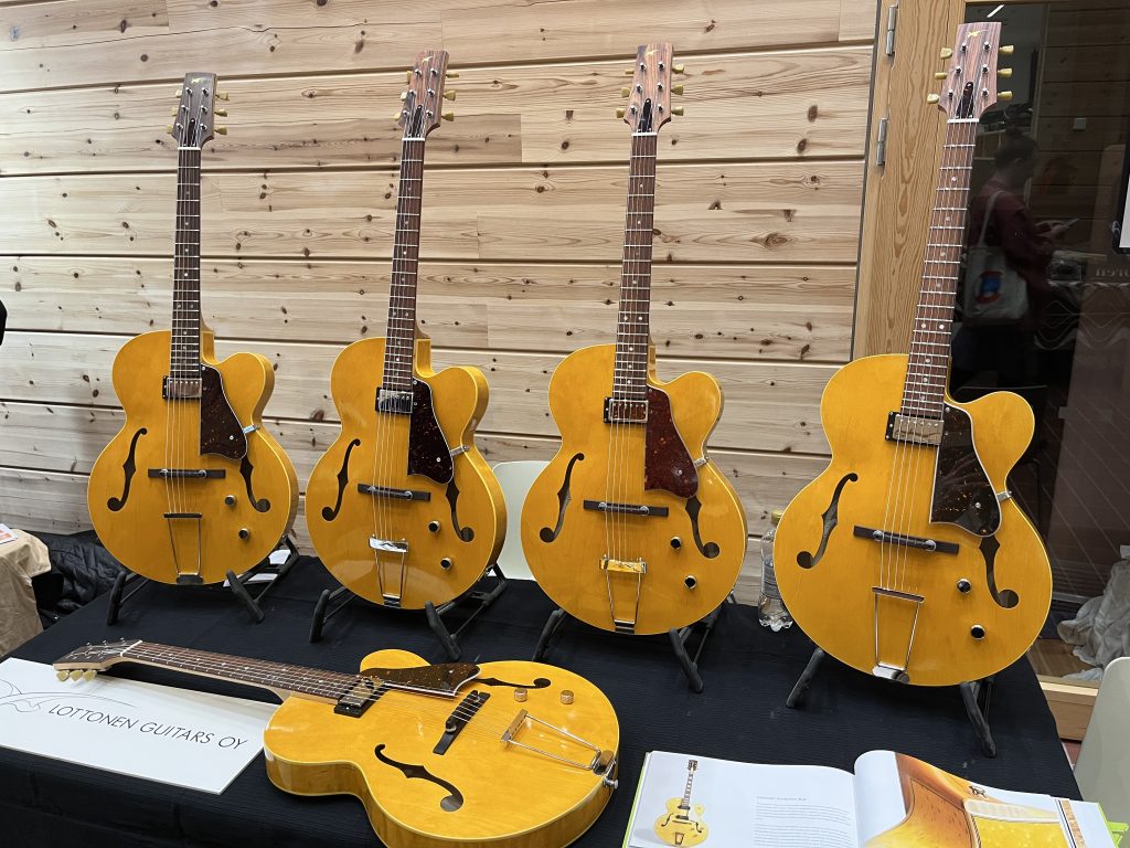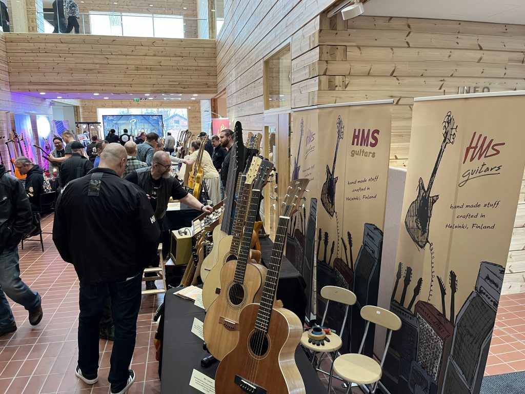 Here I am! I'm at ToneFest (tonefest.fi), the guitar show held in Tuusula, 20 km north of Helsinki, Finland. Around fifty exhibitors, mainly Finnish, are present with a splendid assortment of acoustic and electric guitars from luthiers, boutique pedals, amplifiers, as well as a luthiery school, book and kit sellers, and a distributor.