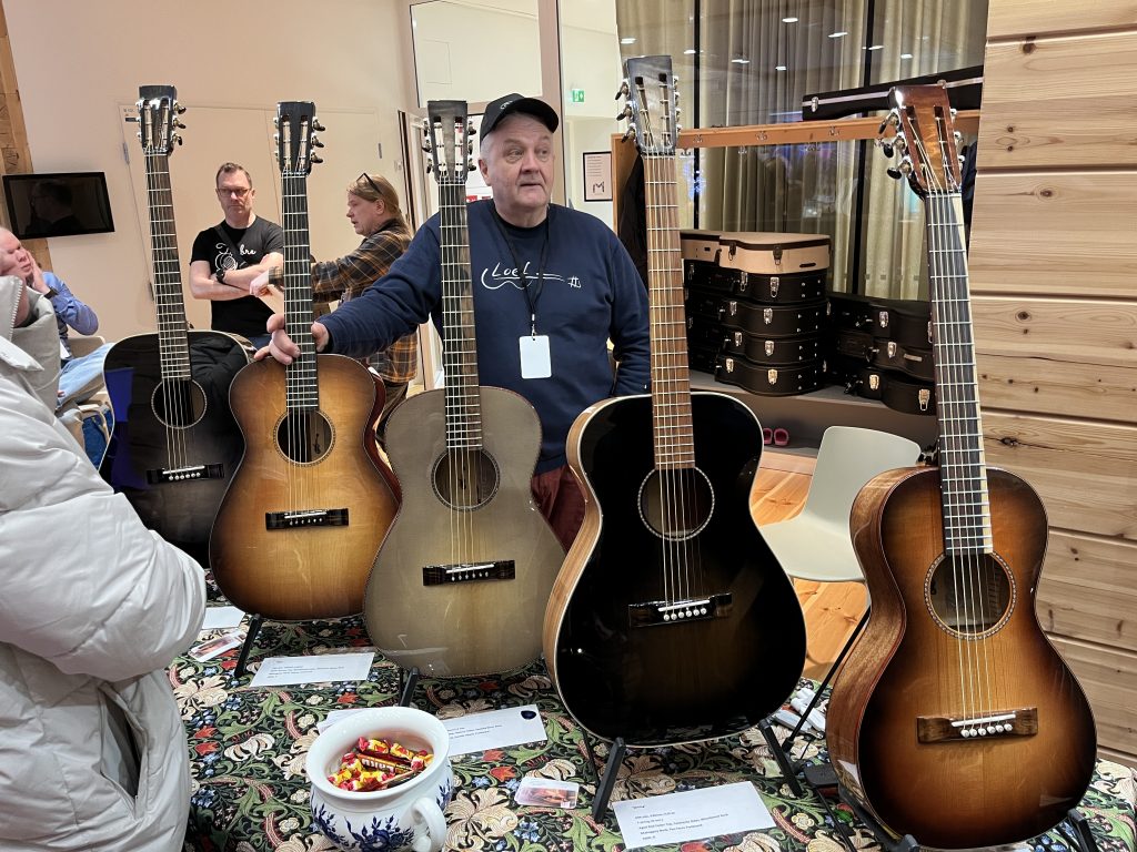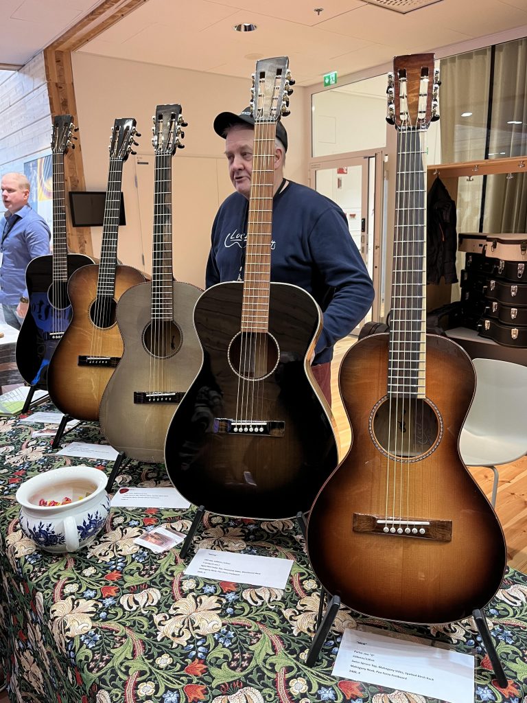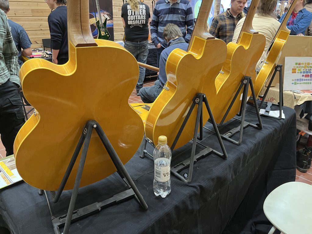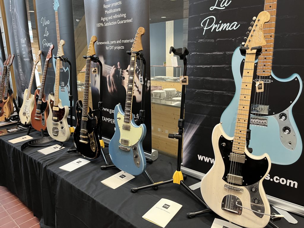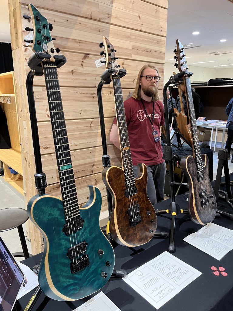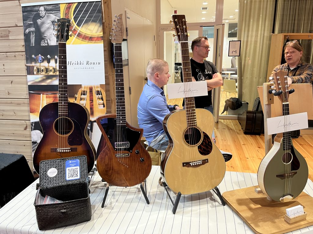 Here I am! I'm at ToneFest (tonefest.fi), the guitar show held in Tuusula, 20 km north of Helsinki, Finland. Around fifty exhibitors, mainly Finnish, are present with a splendid assortment of acoustic and electric guitars from luthiers, boutique pedals, amplifiers, as well as a luthiery school, book and kit sellers, and a distributor.