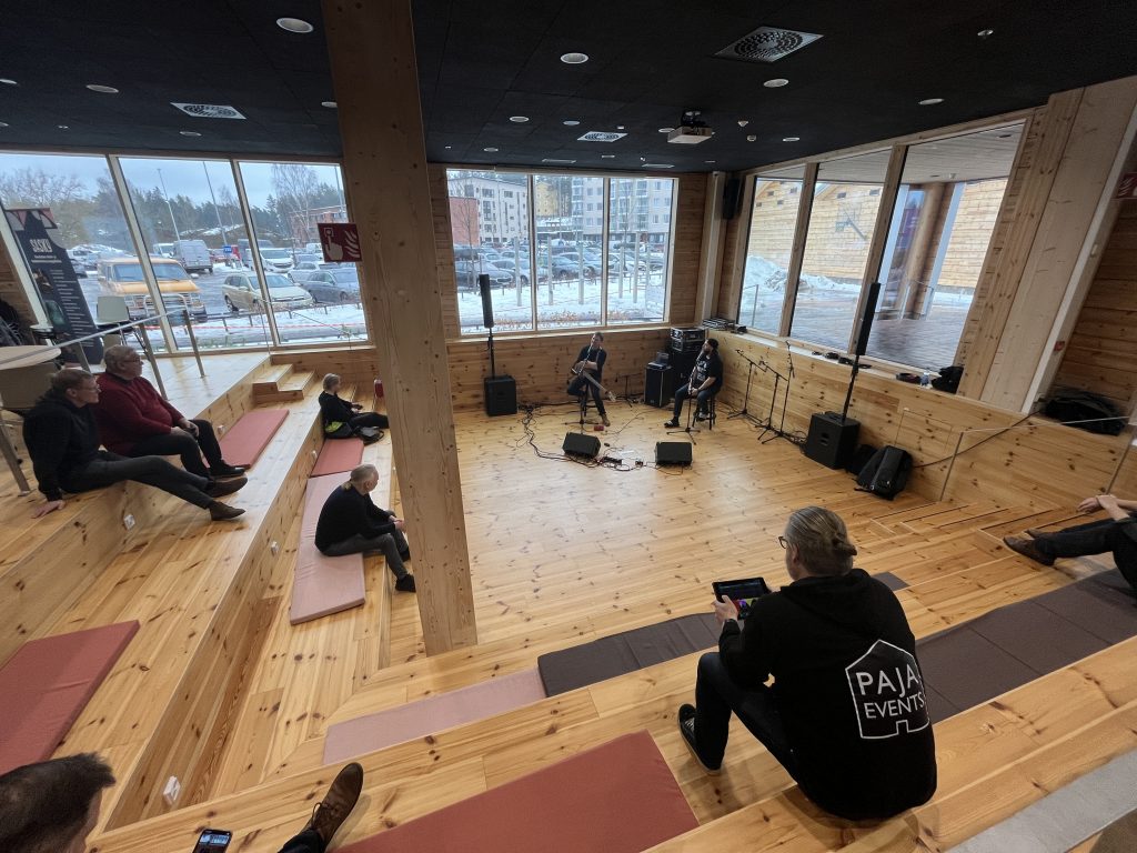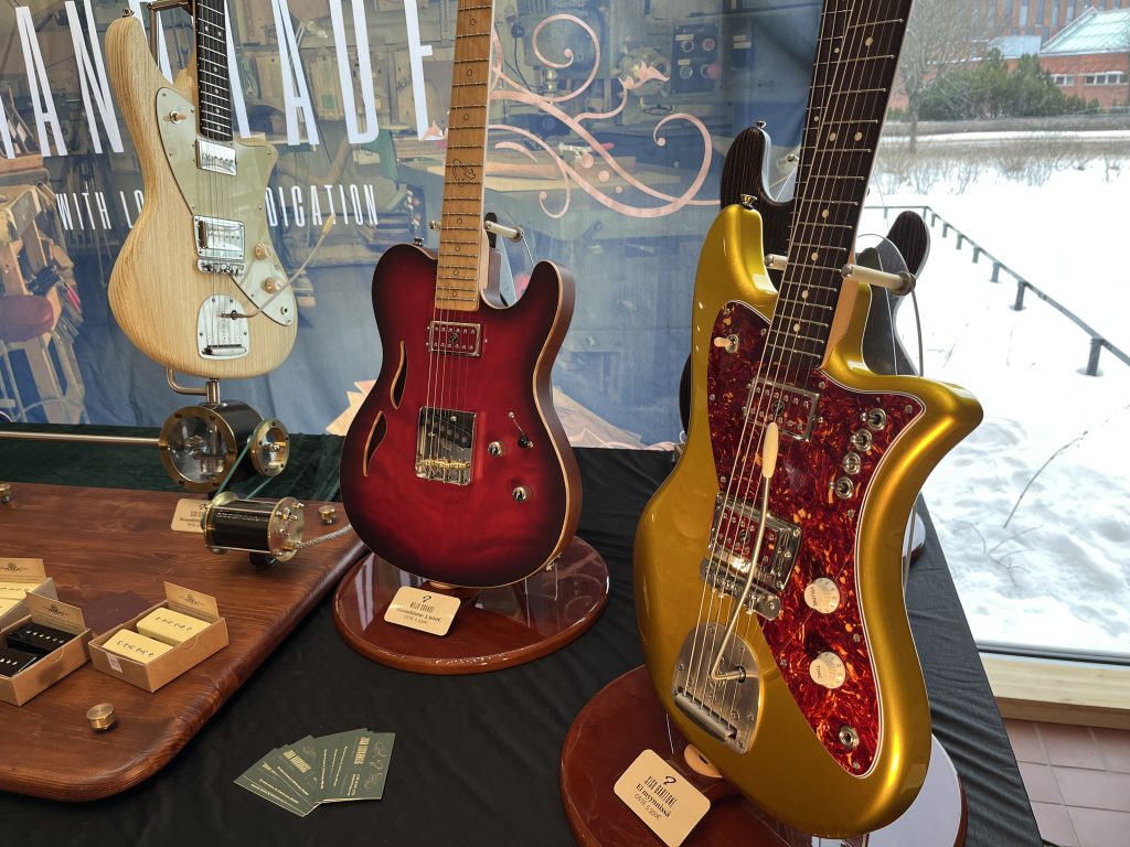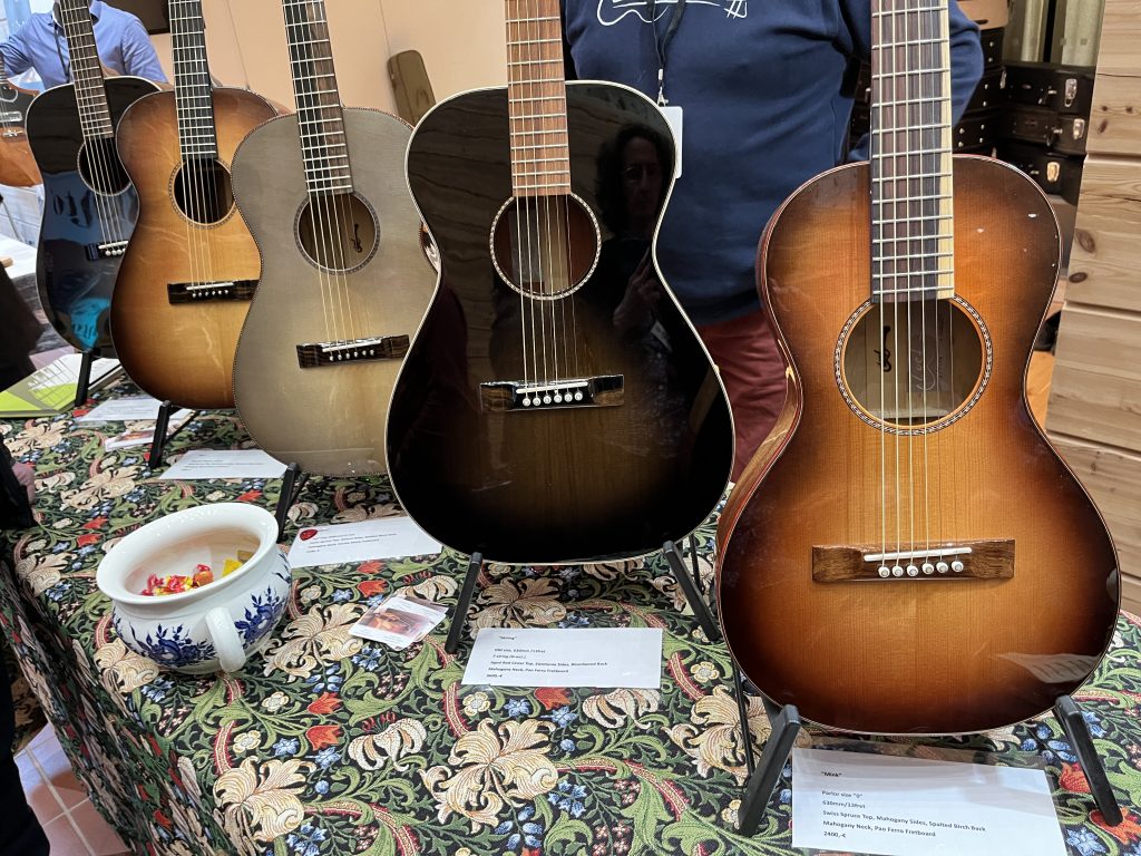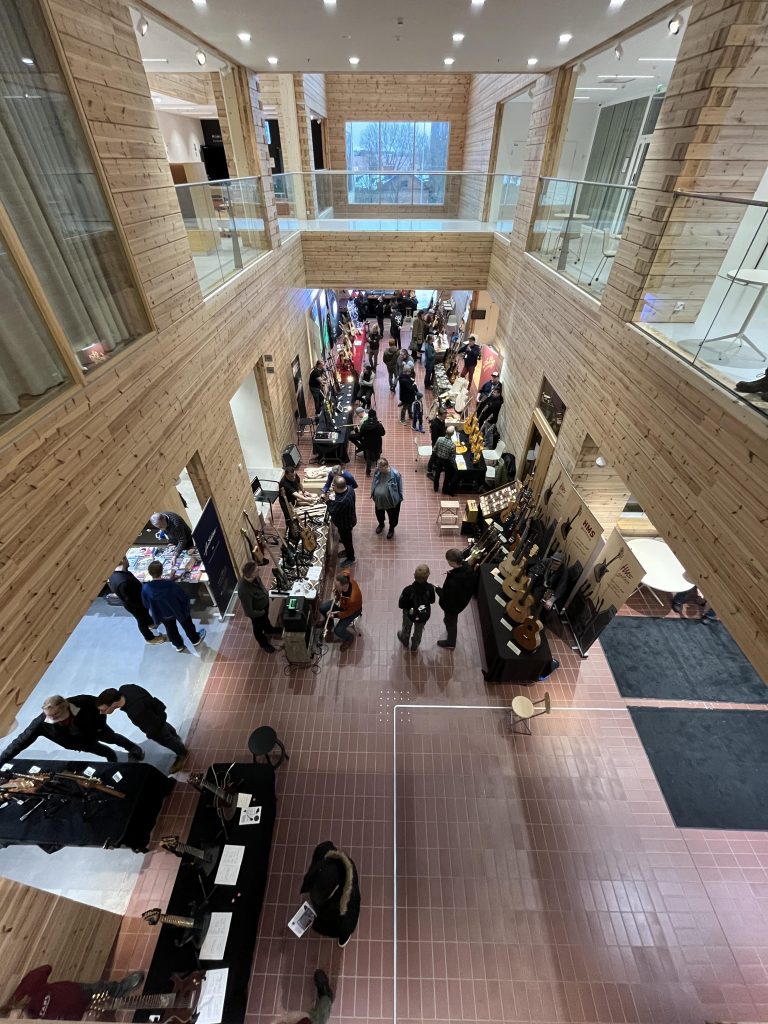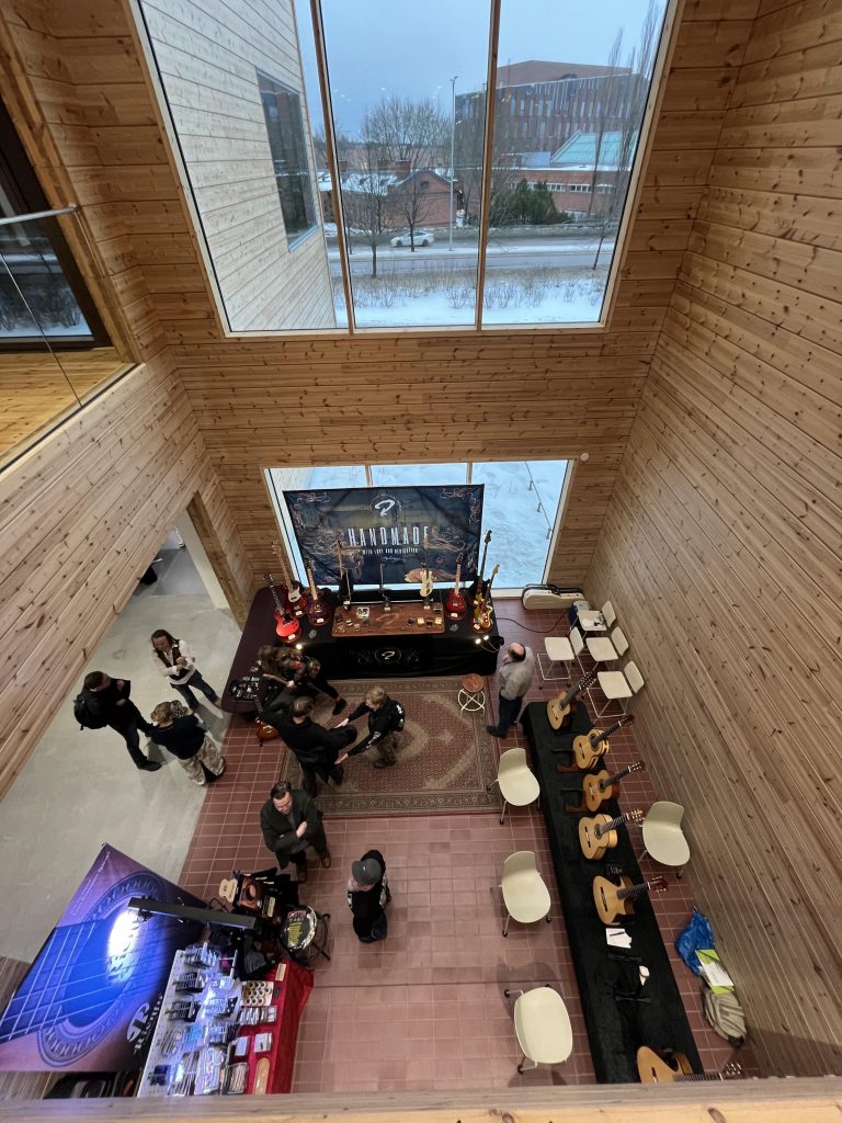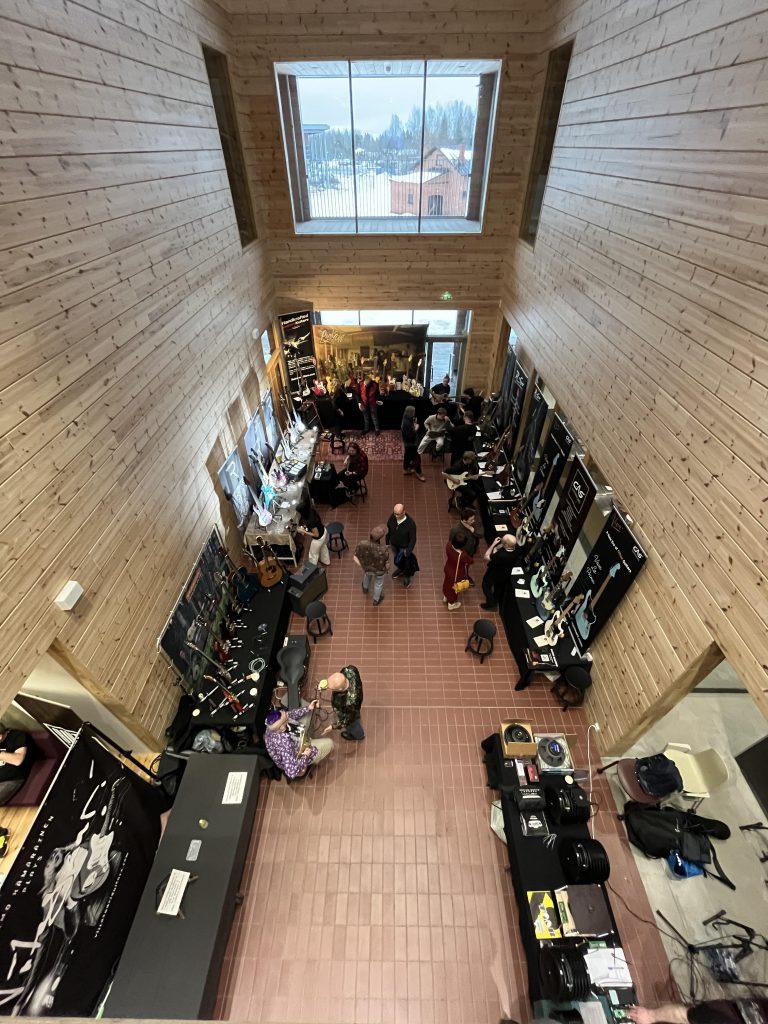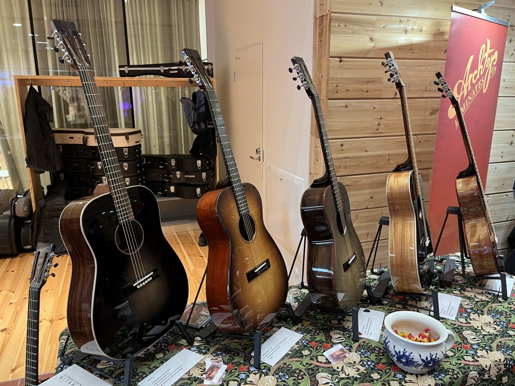 Here I am! I'm at ToneFest (tonefest.fi), the guitar show held in Tuusula, 20 km north of Helsinki, Finland. Around fifty exhibitors, mainly Finnish, are present with a splendid assortment of acoustic and electric guitars from luthiers, boutique pedals, amplifiers, as well as a luthiery school, book and kit sellers, and a distributor.
